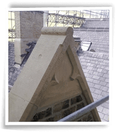 Eroded sections of stonework were cut out and replaced with stone from the original quarry. Replaced items included many window heads, cills, transoms, mullions and quoin stones; including the carved stringcourse sections to the front portico. BRC Leeds Ltd also reformed the castellated copings to the single storey extension. We supplied and fixed the ornately carved coping stones to the boundary wall.